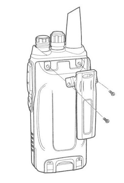 - Lắp kẹp cho bộ đàm: Cần có thên tua-vít 4 cạnh để xoáy. Kẹp bộ đàm rất hữu ích khi kẹp bộ đàm vào thắt lưng và dùng kèm với tai nghe.