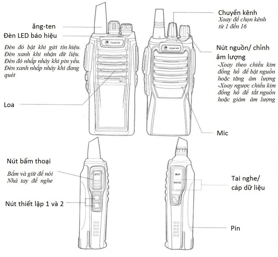 – Các thao tác đó bao gồm: Tắt mở máy, tùy chọn kênh liên lạc, tùy chỉnh Volume lớn nhỏ, thao tác liên lạc nói nghe và cách sạc pin bộ đàm đúng kỹ thuật.